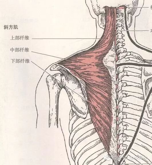 止点:上部纤维止于锁骨外侧端1/3。 中部纤维止于肩峰和肩胛冈上缘外侧。下部纤维止于肩胛冈上缘。
