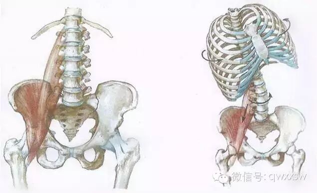 起于:髂肌后部的内侧唇,髂腰韧带及下方三到四个腰椎横突。