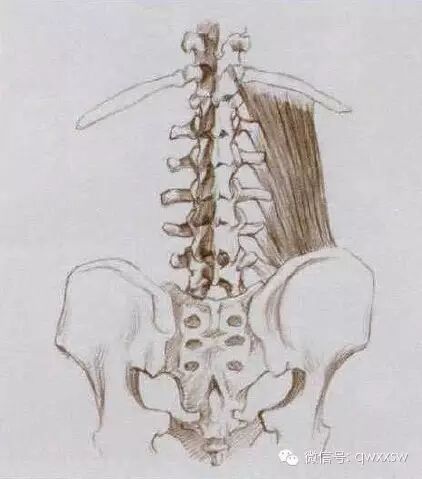 起于:以一总的肌腱及肌束起止骶骨背面,第11~12胸椎和腰椎的棘突及其棘上韧带,髂嵴后部及胸腰筋膜。