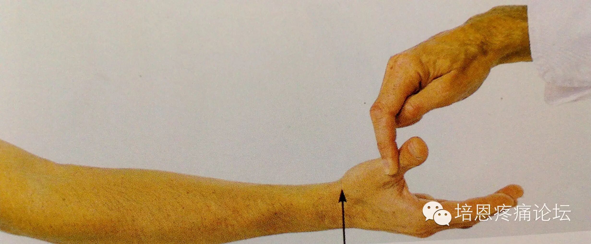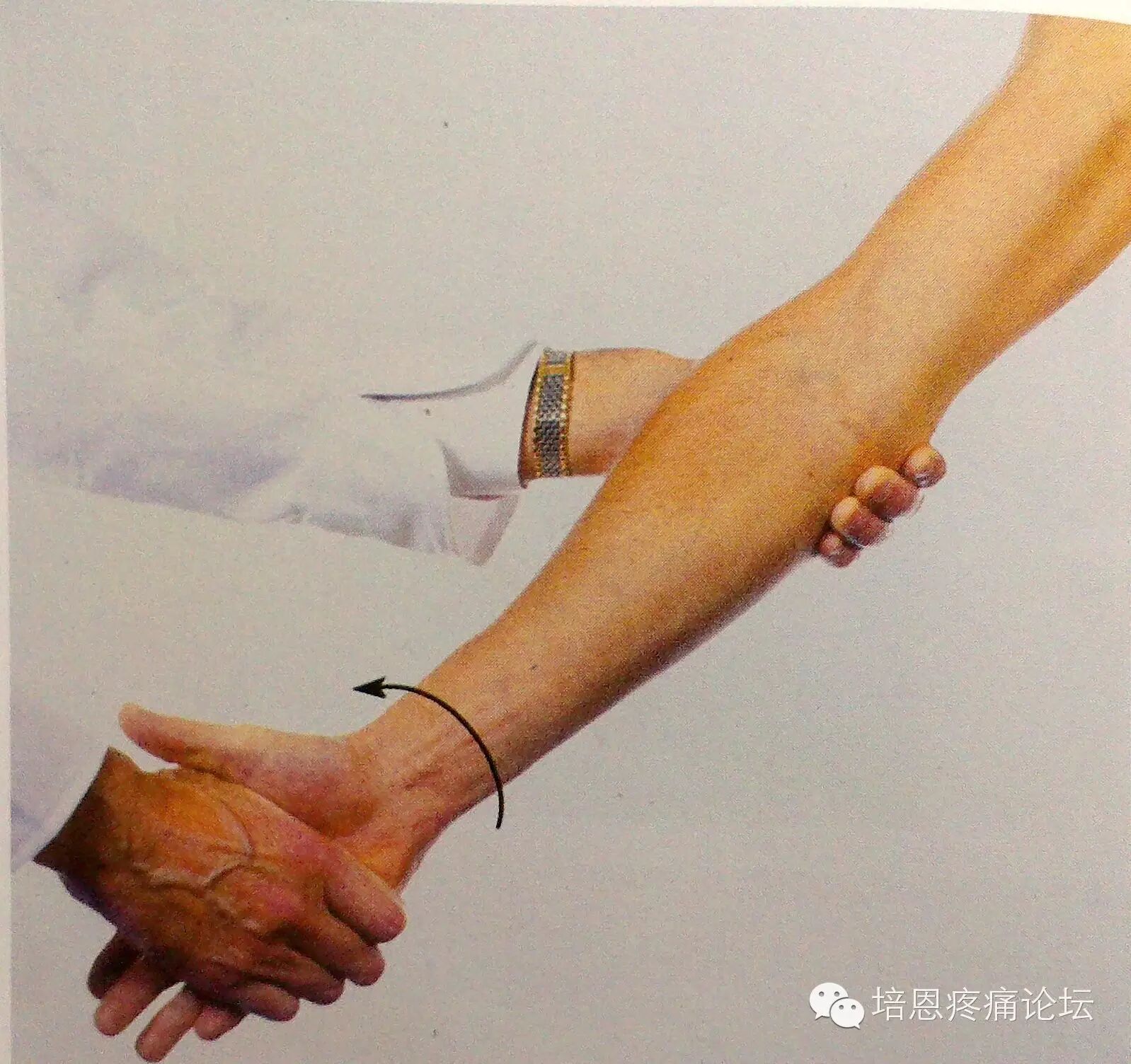 患者前臂在肘关节处伸直,抗阻力旋后前臂。