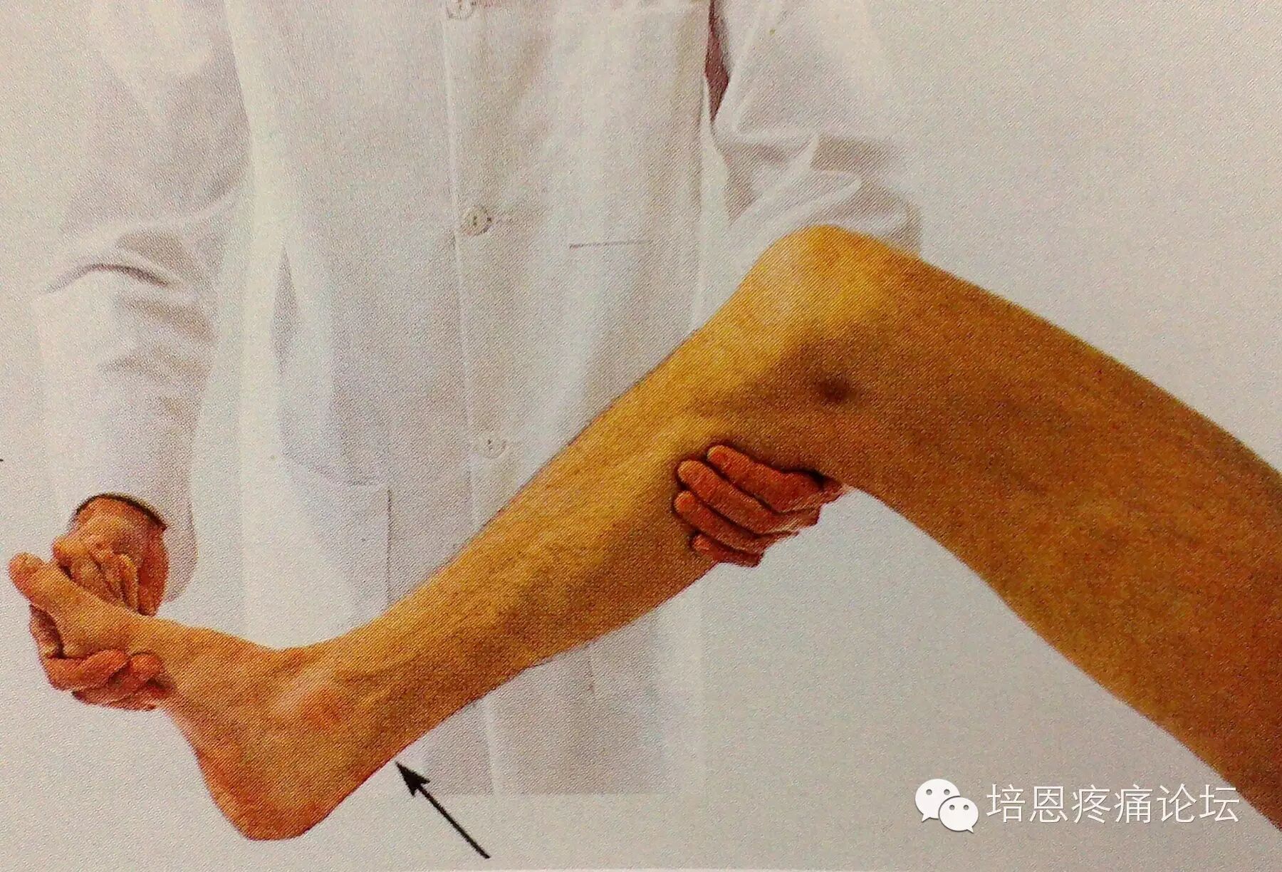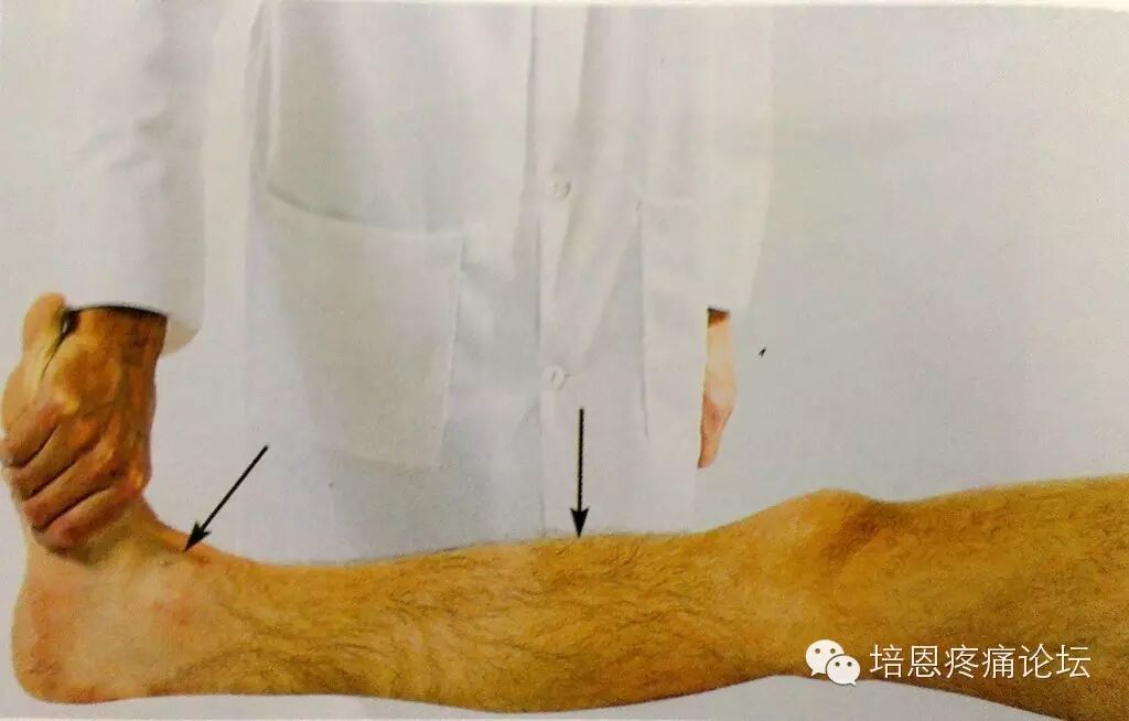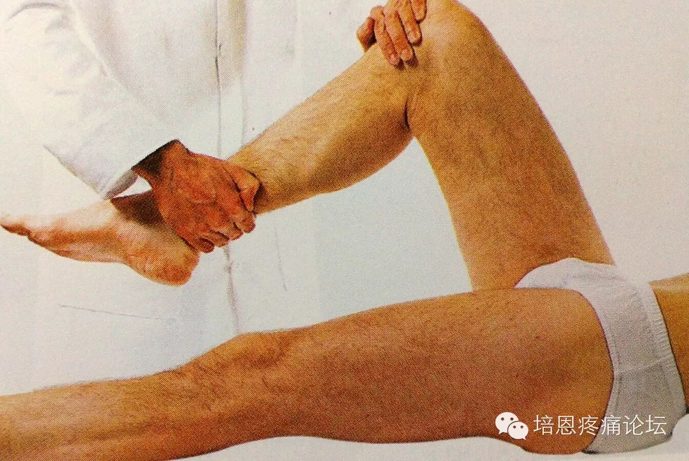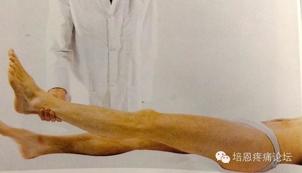 患者仰卧,下肢伸直,对抗阻力,跖屈足部。