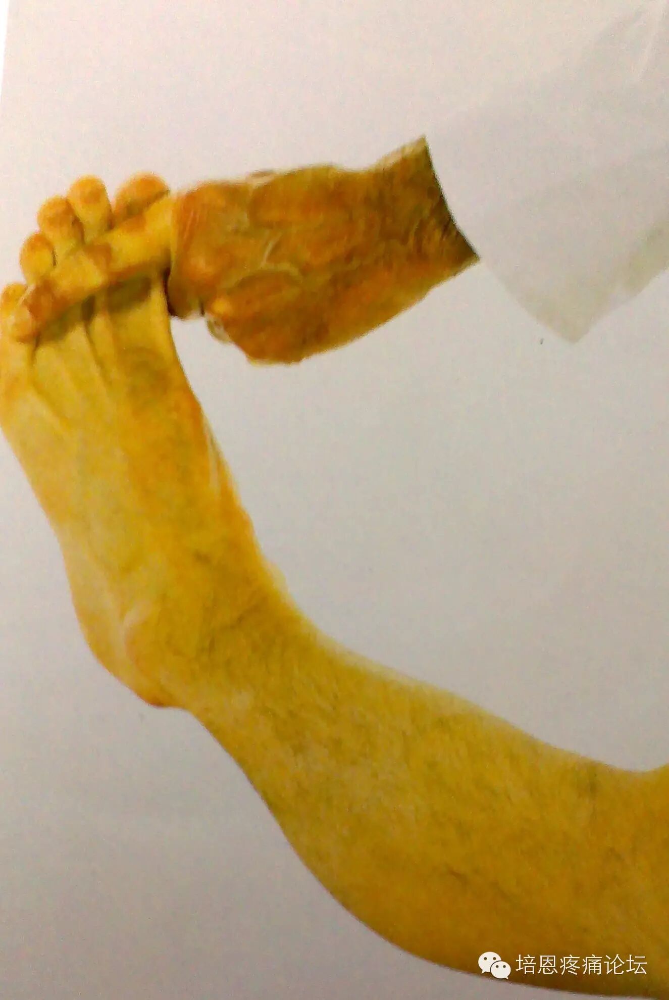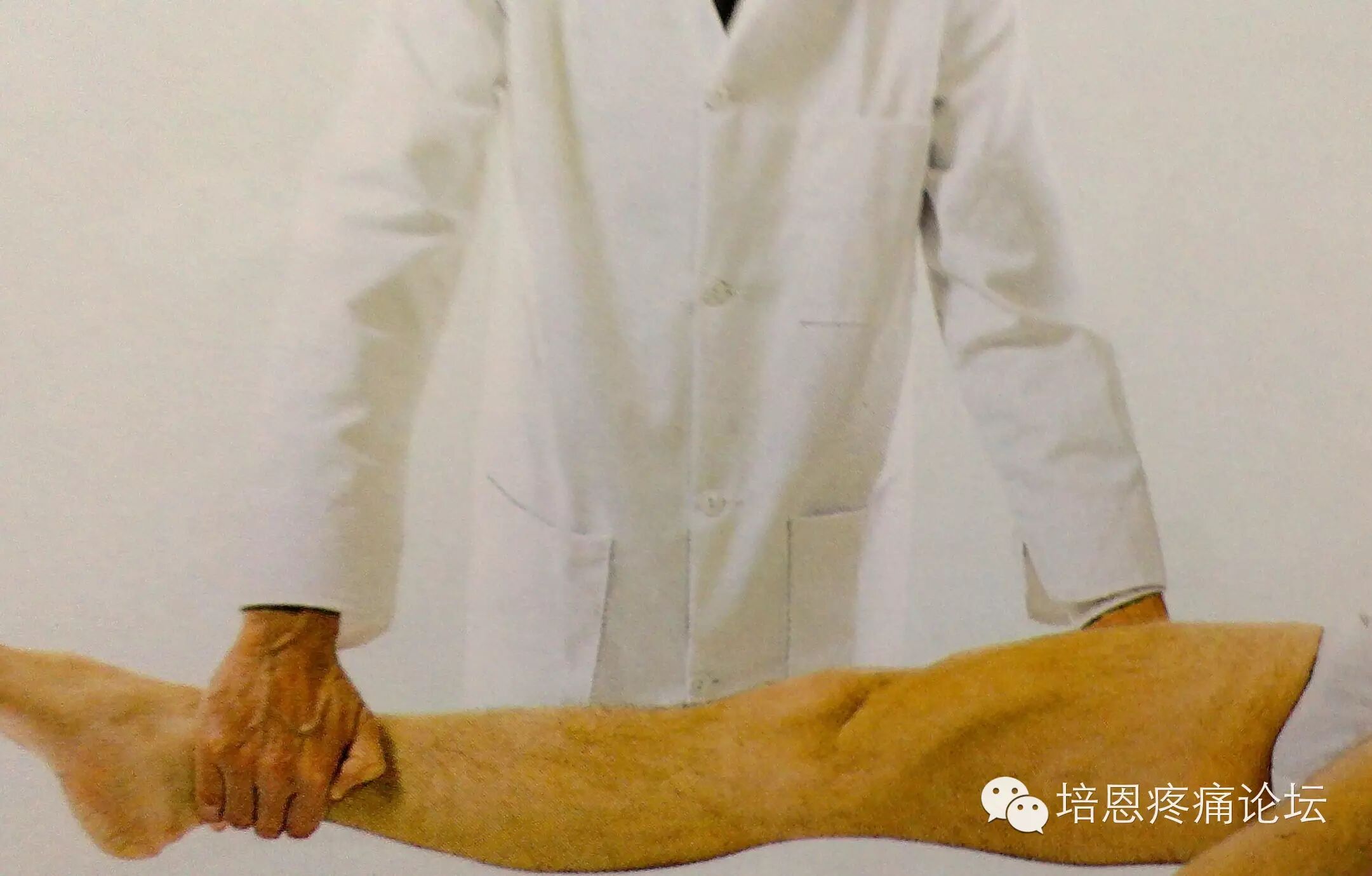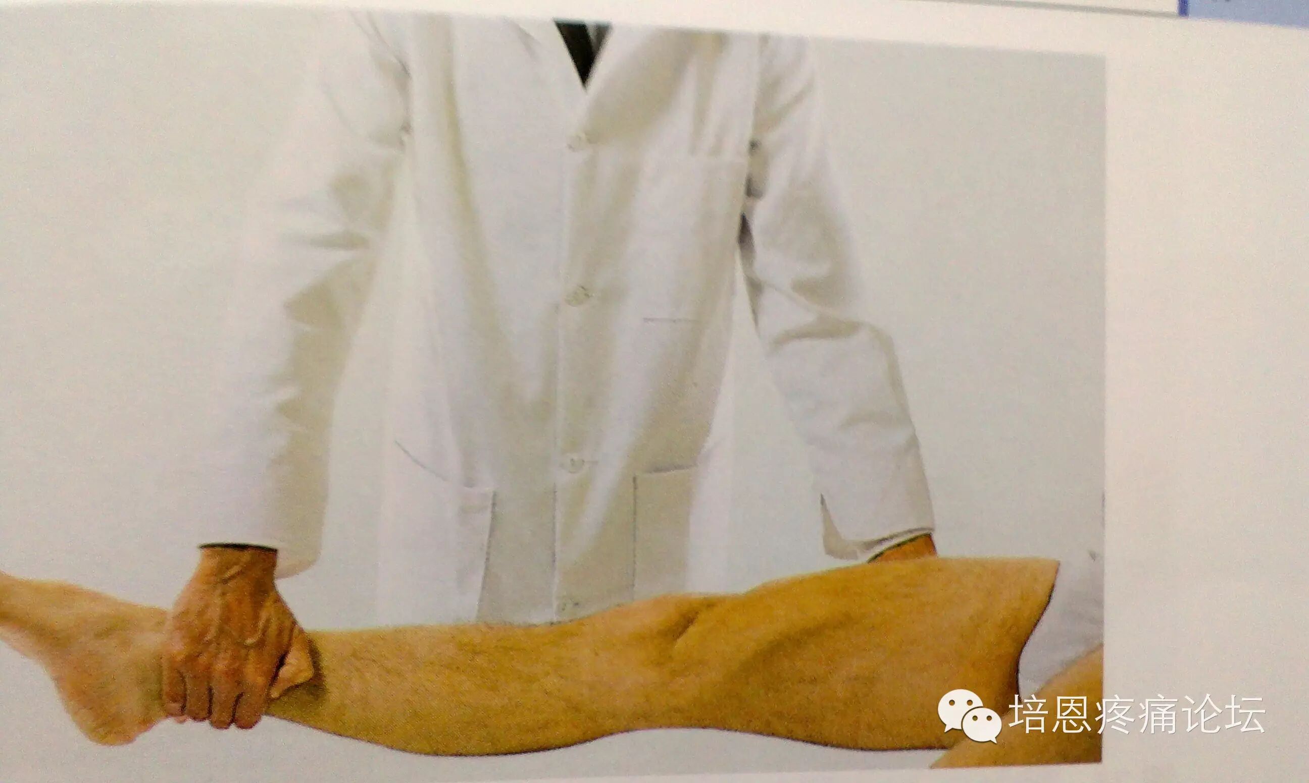 患者仰卧,下肢伸直,对抗阻力,跖屈足部。