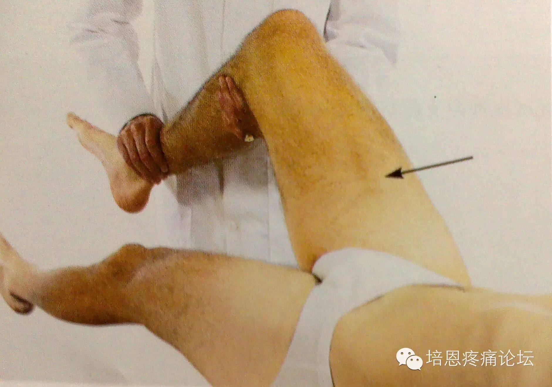 患者平躺,膝关节伸直,对抗阻力内收肢体。