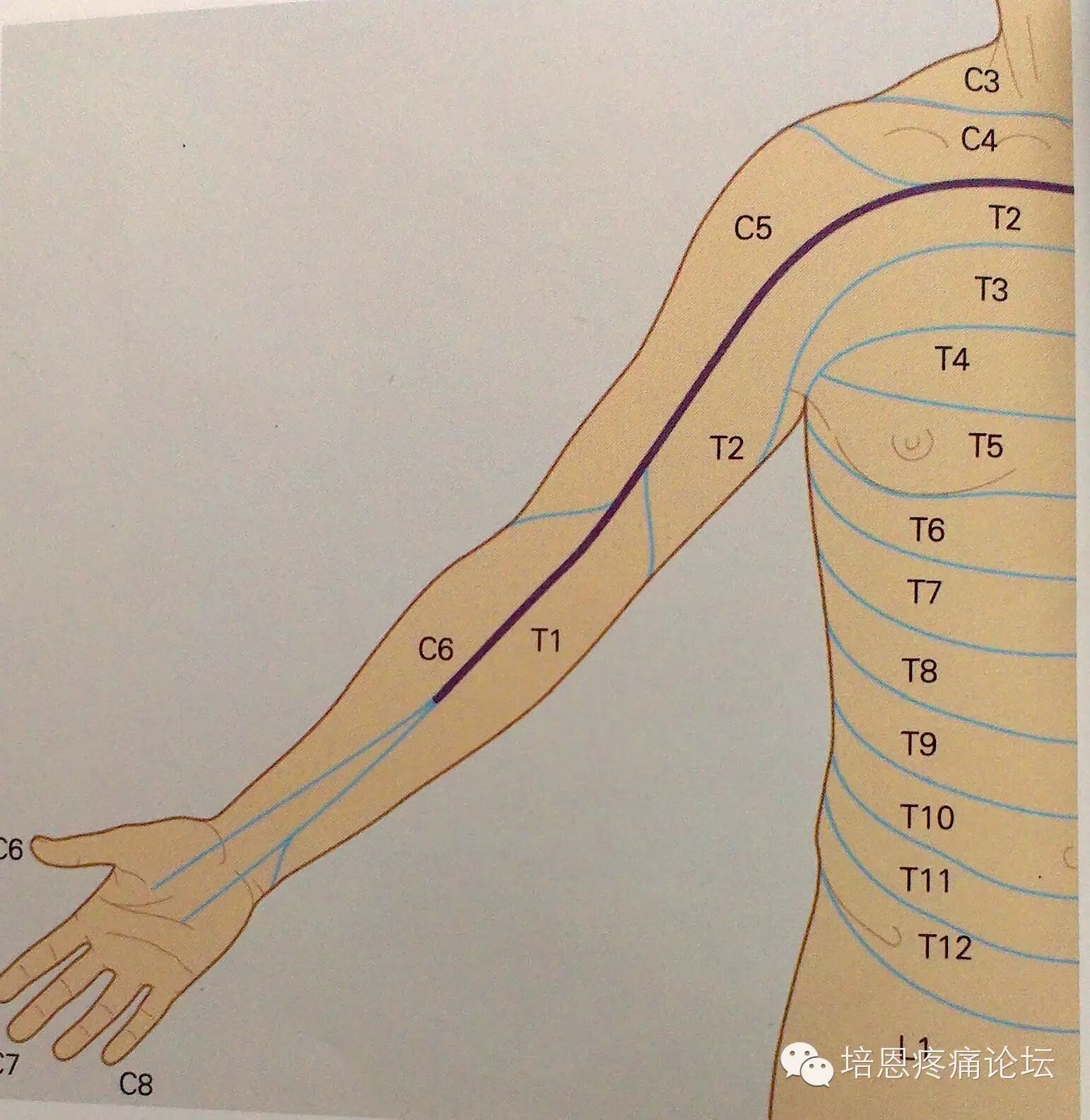 臂丛神经(C5,C6,C7,C8,T1)支配的大致感觉区域