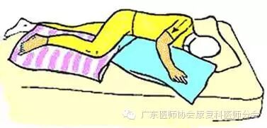 4. 双膝下可垫一软垫,使膝微屈;
