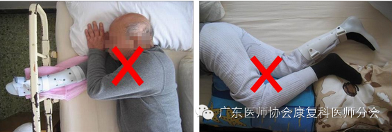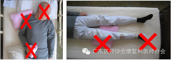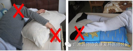 患肩没有牵出,患肩受压 健腿下垫枕位置太靠前,患髋没有后伸