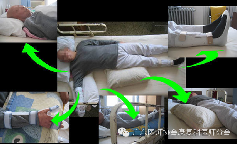 对于脑卒中后偏瘫患者而言,早期床上良好的肢体摆放位置对预防、缓解痉挛、肩关节半脱位、肩痛、肩手综合征、骨盆后倾、髋关节外展、外旋以及早期诱发分离运动等均具有一定作用,是康复治疗中很重要的一个环节,敬请各位家属及陪护人员协助配合!具体操作方法请见图示,不明确的地方请及时询问医护人员,以免操作错误,对功能恢复造成不利影响。