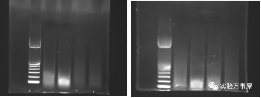 如果实验中间超声破碎后检测出来的各组样品异质性很大,就比如像下图这样的。。。很明显~~这四组样品超声后的结果完全不同质,这样的样品是绝对不能再进行后续实验步骤的了,不然也是浪费抗体啊!抗体可是很贵很稀缺的哦~~