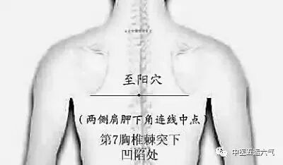 首先,可以按压至阳穴。取穴的方法有两种:一是让病人低头,颈后隆起的骨突即为第七颈椎,由此往下数到第七个骨突即第七胸椎,其下方凹陷处就是至阳穴。二是让病人两手自由下垂,用手摸病人的肩胛骨,在肩胛骨下角的下方即为第七肋间,第七肋间水平线与正中线相交处即为第七胸椎下方,也即至阳穴所在。后一种方法尤适宜于冬季不便脱衣的情况下取穴。