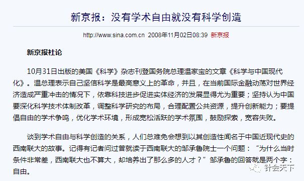 最后,推荐大家参看2008年新京报社论:没有学术自由就没有科学创造。